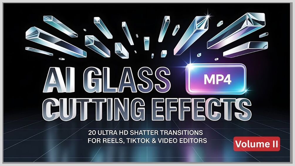 This is Volume II: another set of 20 ultra HD AI-generated glass cutting effects, smooth, dynamic shatter transitions designed for creators who want instant impact without hours of rendering.