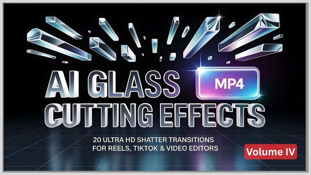 This is Volume IV pack features 20 ultra HD AI-generated glass cutting effects, smooth, dynamic shatter transitions designed for creators who want instant impact without hours of rendering.
