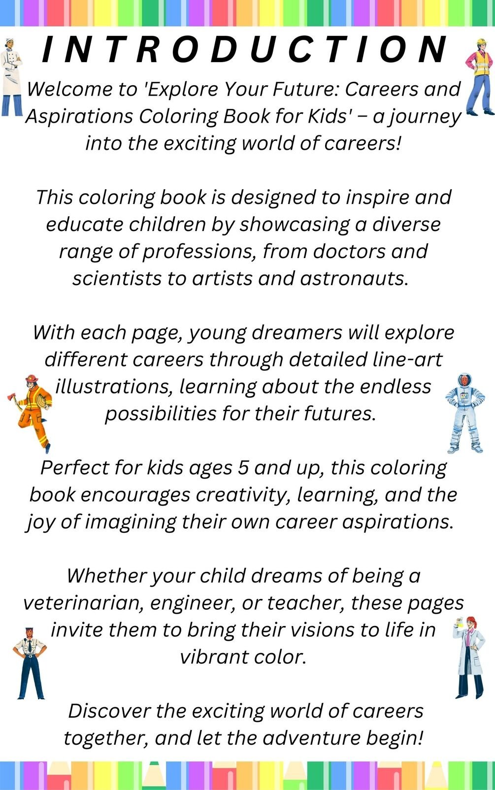 Welcome to 'Explore Your Future: Careers and Aspirations Coloring Book for Kids' – a journey into the exciting world of careers!