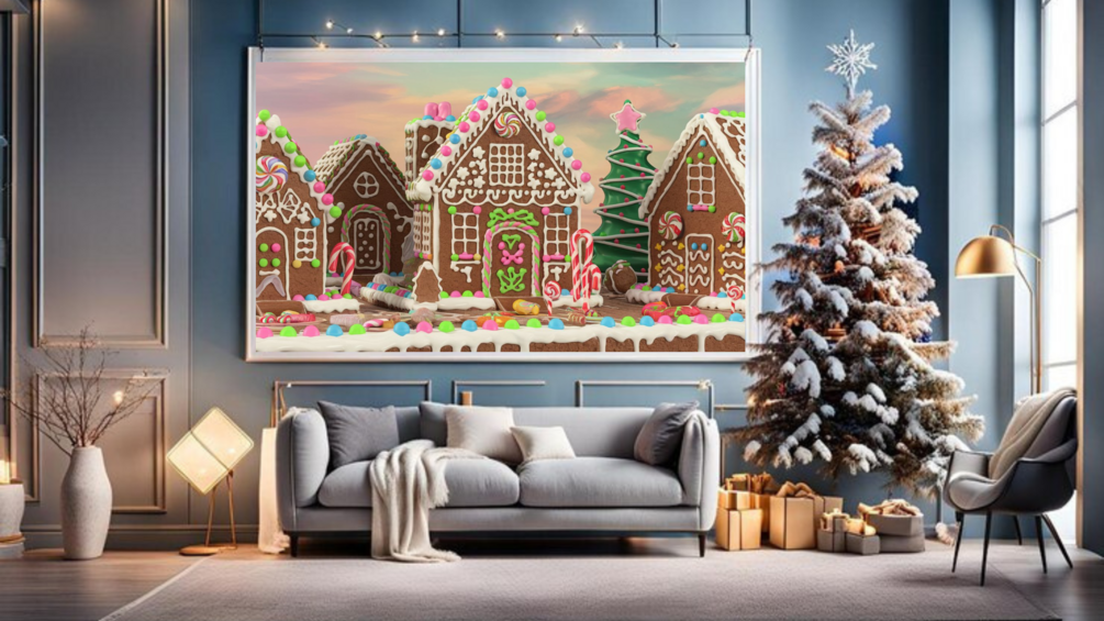 Transform your digital display with this charming "Gingerbread Village: A Festive Holiday Delight," and enjoy the whimsical beauty and joy of the holiday season all year round.