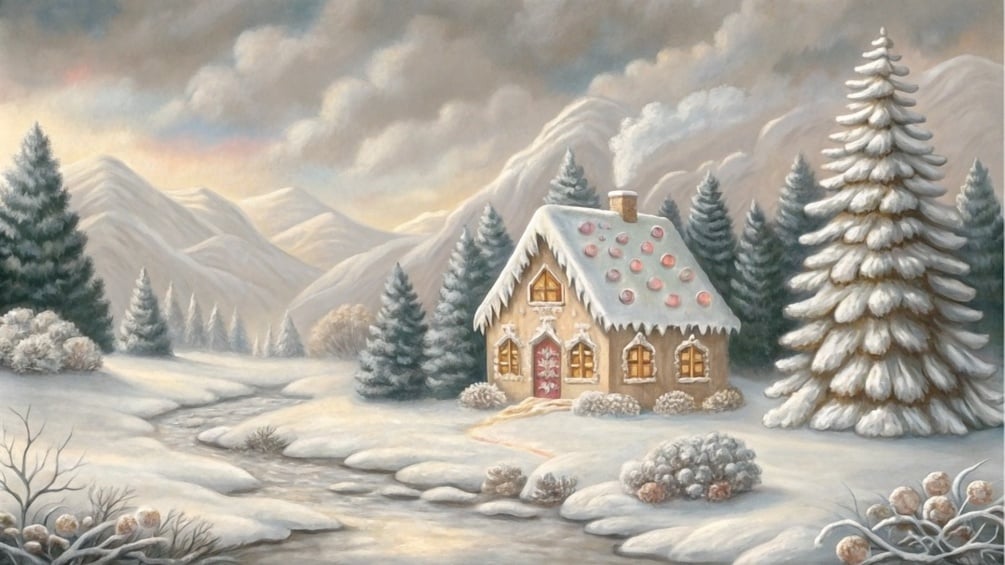 Gingerbread Cottage in Winter Wonderland - Frame TV VI