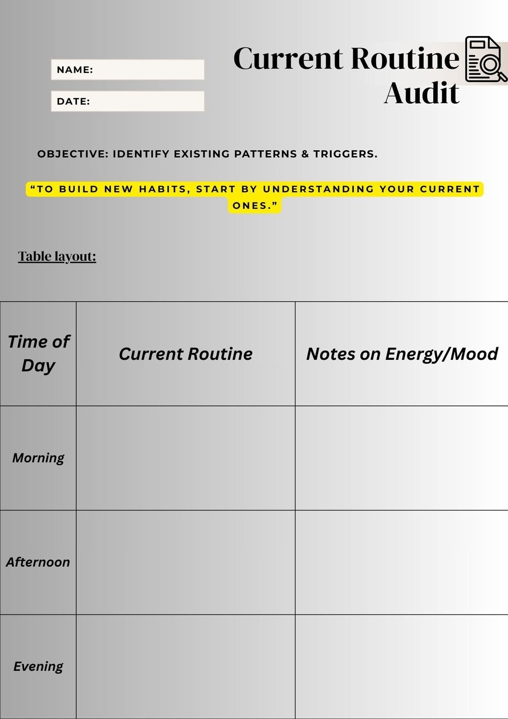 ✔ Break bad patterns using science-backed habit replacement worksheets