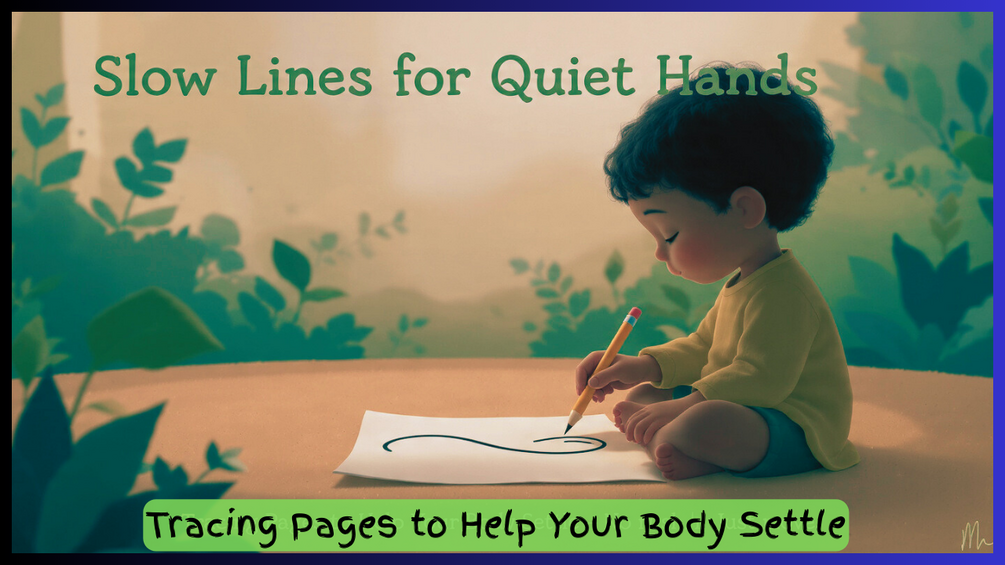 This bundle includes “The Bench Between Us”—a 16-page story about quiet friendship that requires no talking, eye contact, or social performance, and “Slow Lines for Quiet Hands”, five tracing pages reimagined as sensory anchors to help restless hands settle and overwhelmed minds slow down.