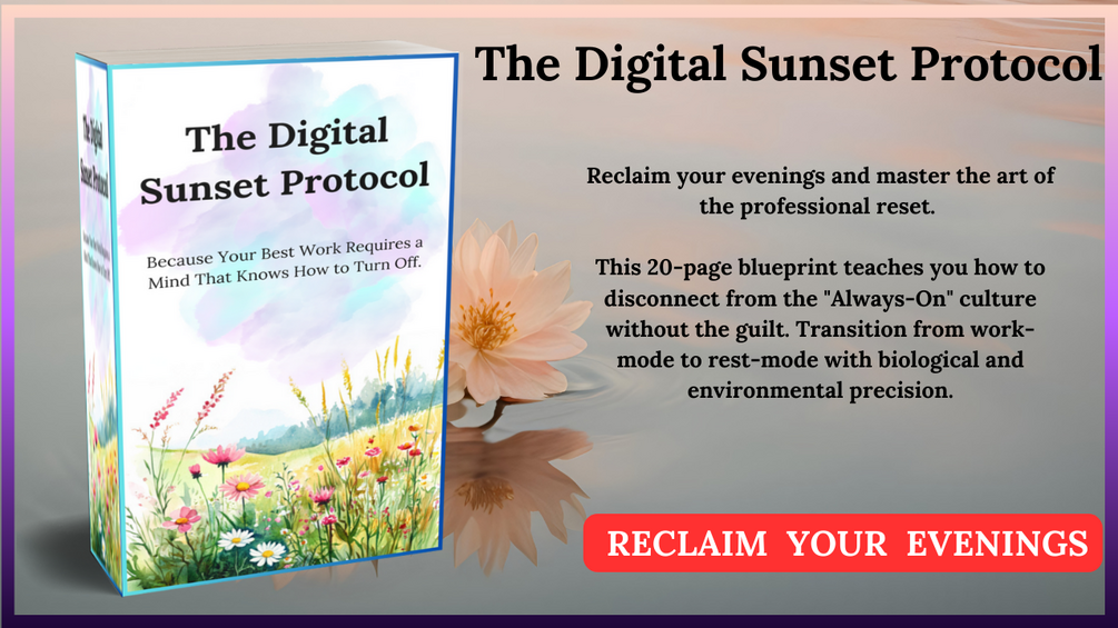 - The Digital Sunset Protocol (20 pgs): Your step-by-step environmental blueprint for a flawless evening transition.