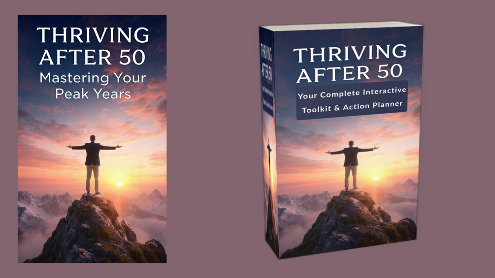 Get "Thriving After 50: Mastering Your Peak Years" and receive our extensive 168-page Master Toolkit FREE – a $47 value included at no extra cost! This isn't just a workbook; it's your comprehensive action system to implement the book's strategies and sustain long-term success.