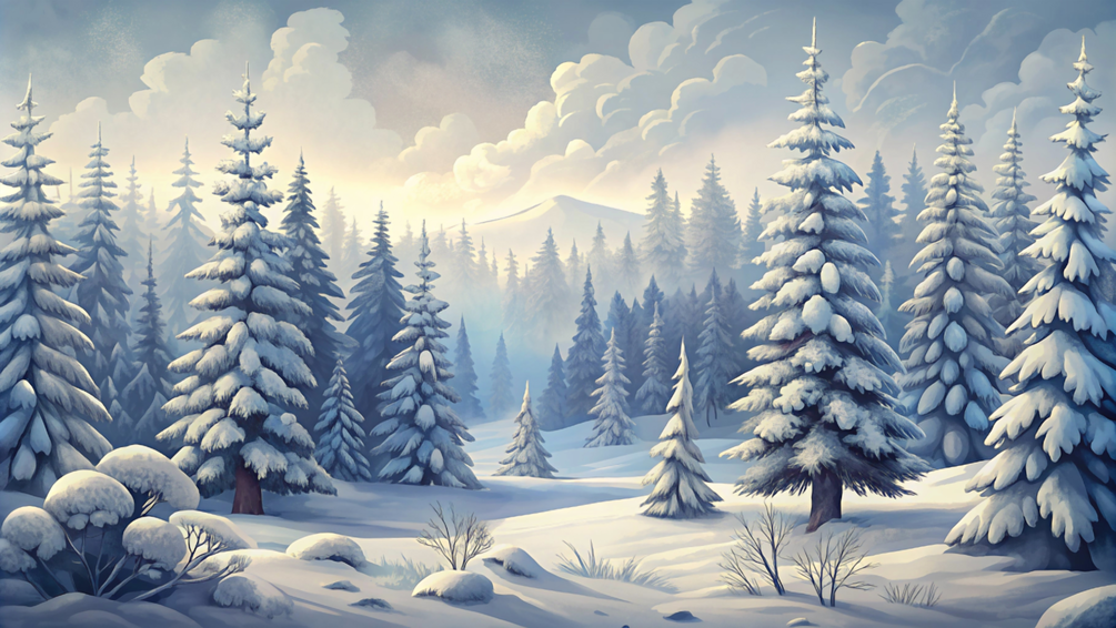 Transform your digital display with this charming "Serene Winter Wonderland: A Tranquil Forest Scene", and enjoy the timeless beauty of nature all year round.